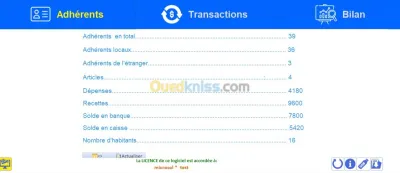 Logiciel Facile et utile Suivi des adhérents et transactions financières Léger; Gestion et classement automatique des nécessiteux (barème personnalisé pour le classement par ordre