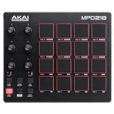 The Akai MPD218 16-pad controller brings functional upgrades to the world famous MPD design. Whether you’re finger drumming or queuing up samples, 16 ultra-sensitive backlit MPC pads creat
