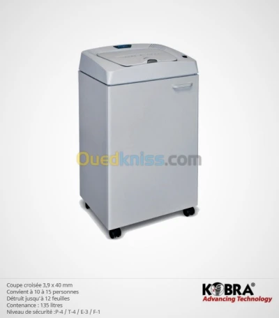 Destructeur de documents professionnel KOBRA AF.1 C4 Le destructeur de documents KOBRA +1 C4 est une machine de broyage adaptée à des groupes composés de 1 à 3 personnes. Disposant d
