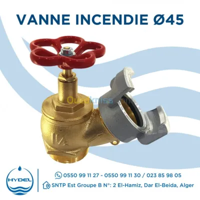 Robinet d'incendie équipant les canalisations d'installations fixes de lutte contre l'incendie en bronze de diamètre Ø1" 1/2 45mm avec un raccord en aluminium de diamètre 45mm ➡️ P