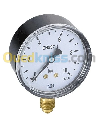 MANOMÈTRE SEC BOÎTIER PLASTIQUE Boîtier et sphère ABS. Mouvement et raccord filetage en laiton, Précision 2,5% Ø40 mm et 1,6% reste diamètres, fabriqués selon la norme EN 837-1. A