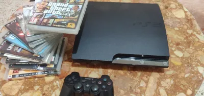 Une Playstation 3 slim en excellent état fourni avec une manette et jeux CD