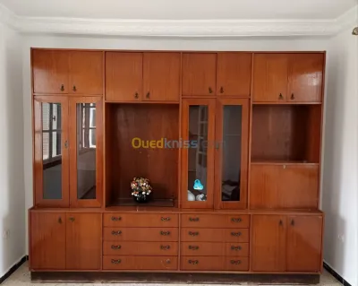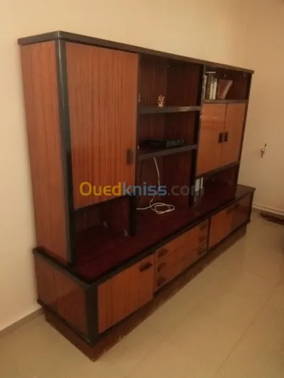 Vends un grand meuble de salon en bois massif de très bonne qualité, acheté dans les années 2000 à un prix élevé (5 millions à l’époque). Fabriqué avec un bois noble et durable,