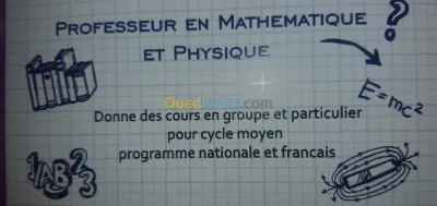 je propose des cours particuliers pour les élèves du cycle moyen (CEM) de mathématiques et physiques à cheraga -Alger-
