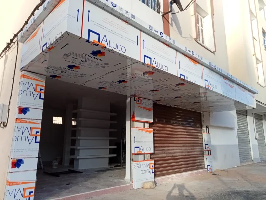 تغليف وجهات المحلات التجارية والكتابة الاشهاريه