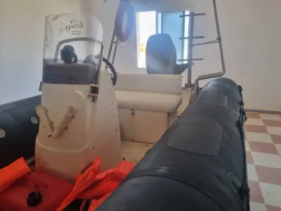 Semi rigide Marque : Zodiac Modèle : Pro Open Finition : Raid ( édition limitée) Tissu : hypalon néoprène Longueur : 6m50 Réservoir intégré 120litre Direction hydraulique Héli