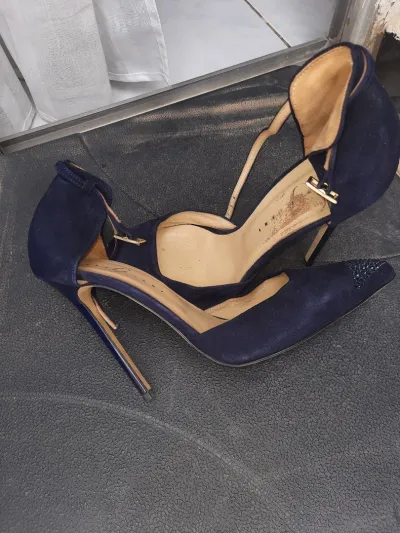 Vend jolie escarpin cuir état neuf pointure 37.5 couleur bleu perlé devant