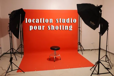 Location studio pour prise photo et video equipement : Plusiers fonds 2 flashes Godox 80 cm 2 soft boxes 2 panneaux de lumiere continu Trépied professionel 2 microphone Rode sans fil