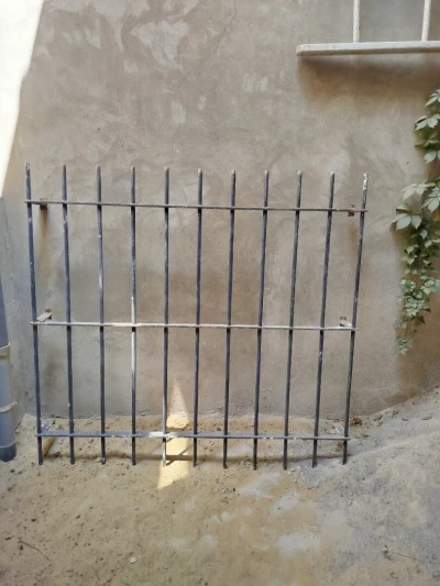 Vends fenêtre à barreaux en fer plat percé (40x8 mm) et fer plein (16 mm), fabrication artisanale robuste au style traditionnel. Idéale pour sécuriser et embellir vos ouvertures.