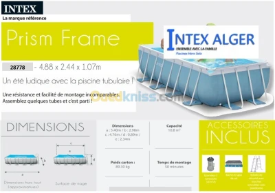 Piscine Piscine hors sol Intex Prisme Frame -488x244x107cm-(26778) Les accessoires essentiels sont fournis : ------------------------------------------------------ Tous les modèles de