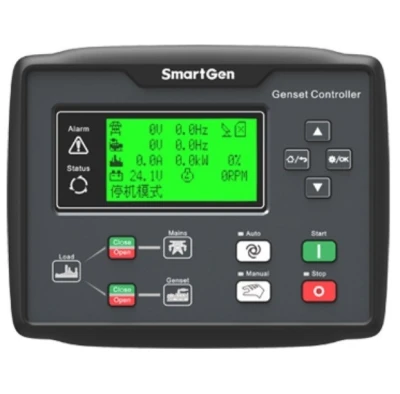 Affichage LCD (132*64) Panneau de commande Caoutchouc de silicone Langue : 7 langues Entrée numérique 5 Sortie relais 6 Entrée analogique 3 AMF ● Système CA 1P2W/2P3W/3P3W/3P4W Fréqu