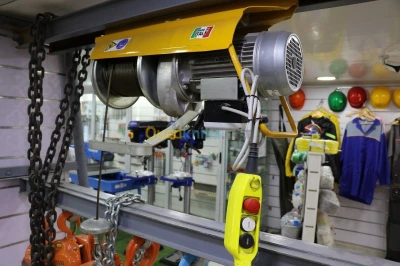 Monte charge électrique avec câble de 30 mètres tout neuf jamais utilisé, pouvant monter un poids de 600 kg + son bidon à sable.