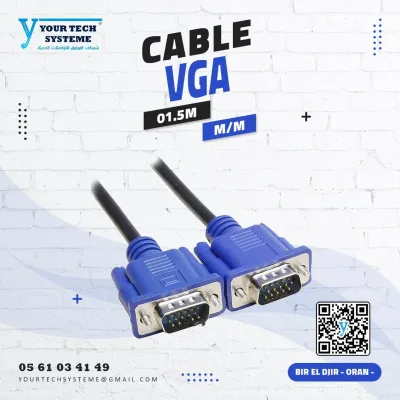 كابل VGA بطول 1.5 متر M/M هو كابل يستخدم لربط جهاز الكمبيوتر أو اللابتوب بشاشة العرض أو شاشة الكمبيوتر. يتميز