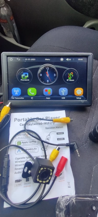 Écran tactile 7", radio, bluetooth, port USB, emplacement carte SD, possibilité d'ajouter caméra de recul Presque neuf utiliser peu de temps