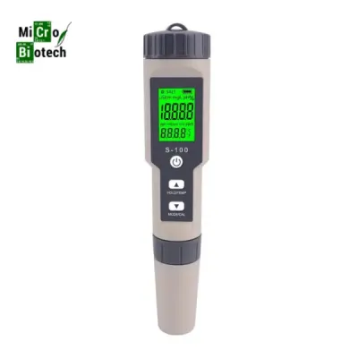 Ce Multiparamètre 4 en 1 est de haute qualité, est idéal pour multiples applications. Il permet de mesurer la salinité (0 ~ 10000 ppm/10.1 ~ 250.0 ppt ou %), le TDS, l’EC et la tempér