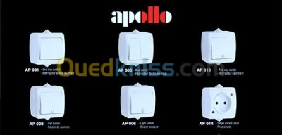 Prise simple et avec terre, télévision, RG45, interrupteur simple allumage, double allumage, va-et-vient, bouton poussoir, volet électrique……..ect Disponible dans différentes gammes