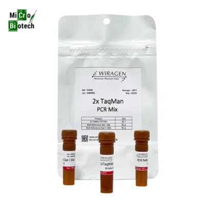Le 2x Taqman PCR master mix est spécifique pour la PCR en temps réel par sonde. Ce réactif peut bloquer totalement l’activité enzymatique de la Taq à température ambiante pour démar