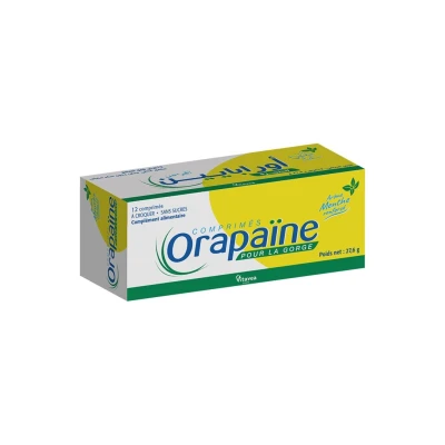 Complément alimentaire à base de papaye et de vitamine C. Boite de 12 comprimés à sucer. Les pastilles Orapaïne contribuent à apporter un réconfort aux bouches et gorges irritées, s�