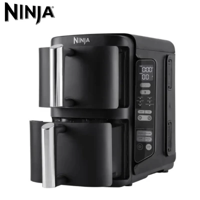 NINJA Double Stack XL Friteuse sans huile, friteuse verticale à 2 tiroirs, 4 niveaux cuisson, 2 tiroirs et 2 grilles, design compact, capacité de 9,5L, 6 fonctions de cuisson, 8 portions,