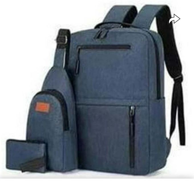 Backpack made of durable Oxford and polyester materials, sized at 32×16×46 cm. It features a zipper closure, multiple compartments including a zipper pocket, slit pocket, and mobile pocket