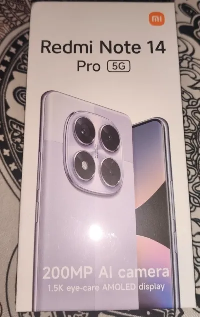 Redmi note 14 pro 5 g. Global version 5g not 4g Ram 8 stokage 256 Black color Display :AMOLED, 68B colors, 120Hz, HDR10+, Dolby Vision, 3000 nits (peak) Corning Gorilla Glass Victus 2