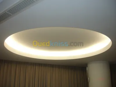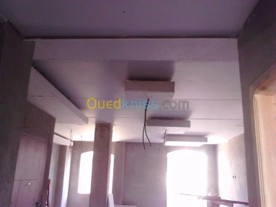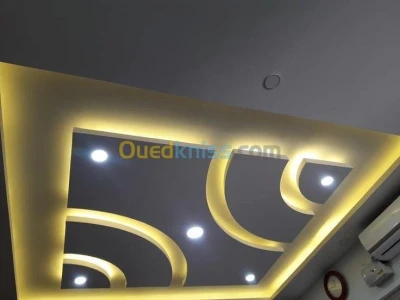 -faux plafond en placo plâtre. -revetement mural en placo platre . -cloison de separation en placo platre -decoration en placo platre (meuble TV /etageres ....etc). - peinture moderne