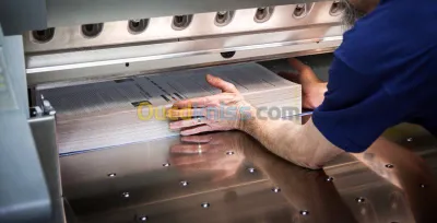 Imprimerie offrant divers services d'impression, de découpe et de collage. Matériel utilisé offset, Speed master, cylindre avec dorure à chaud, découpeuse à plat format 70*100 plieus