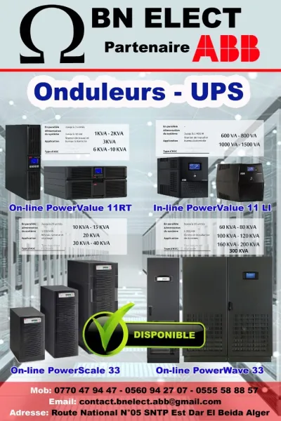Disponible tout la Gamme des Onduleurs TRI/TRI MONO/TRI MONO/MONO.... une large gamme de puissance : *1kva : Tour / Rack *2 kva : Tour / Rack *3 kva : Tour / Rack *6 kva : Tour / Rack *