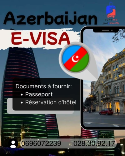 E-Visa Azerbaïdjan 30 Jours 1 seule sortie 10.000 dzd 30 jours 01 seule sortie express 17500 dzd Dossiers a fournir 1. Scan passeport 2. Résérvation d’hotel