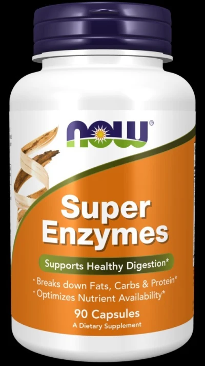 Gélules de Super Enzymes Favorise une digestion saine • Décompose les graisses, les glucides et les protéines* • Optimise la disponibilité des nutriments* NOW ® Super Enzymes est un