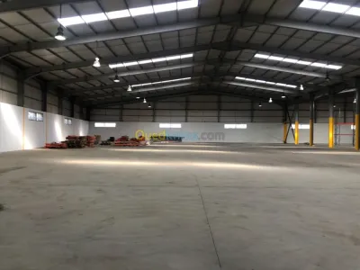 Agence Djamel logistique met en location un hangar sise à baraki sup 1000m2 / 600m2 couverte sise à baraki zone industrielle. Saliba a proximité de l’auto toute libre de suite