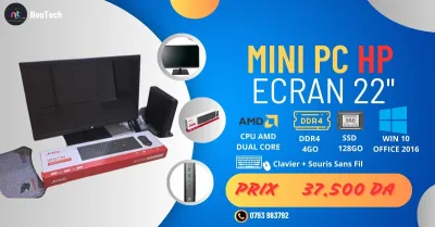 JE VEND UN MINI PC DE MARQUE HP AVEC ECRAN 22 POUCE ET CALVIER ET SOIURIS SANS FIL TOUTS DETAIL SUR LES PHOTOS