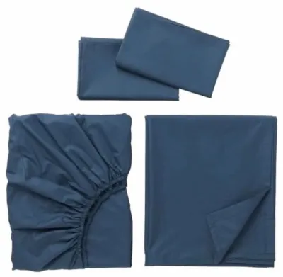 Parure de draps 2 places 6 pièces 100 % coton turc. Drap Housse bleu nuit, dimention : 190x160, drap plat à rayures bleu et blan dimension 240x230, 2 taies d'oreiller bleus dimension :50x