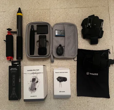 Vend caméra insta 360x4. Avec étui, perche, trépied, poignée de selfie, double batterie, caisson de plongée, etc … le tout neuf.
