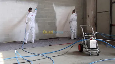 Application Professionnelle et Technique d’enduits et peintures au pistolet Airless Tecnover 15000 Enduit de lissage garnissant projeté à l'Airless , ratissage au parfait lisse, épai