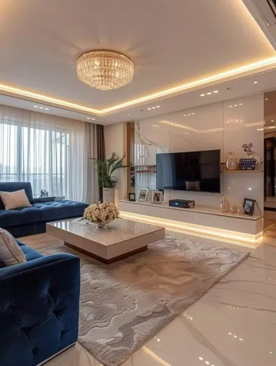 Décoration placoplâtre - meuble TV - plafond en placoplâtre - plafond en PVC - montage de spots عمل متقن و سعر في متناول .