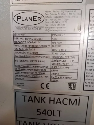À Vendre – Groupe Froid Planer P154 HA-S (Disponible en stock) Machine de refroidissement industrielle Planer – Modèle P154 HA-S, en excellent état, immédiatement disponible pour vos