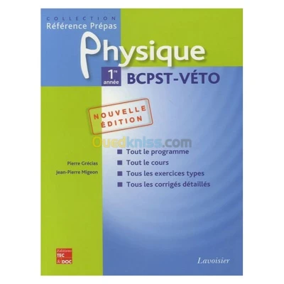 Titre : Physique 1re année BCPST-Véto 2EME EDITION Auteur : Pierre Grécias Editeur : Lavoisier Année : 2009 Théme : Sciences De L'Ingénieur Sous-théme : Sciences Physiques ISBN : 9782