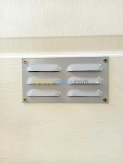 fabrication grille d'aération métallique pour porte tout dimensions, peinture poudre epoxy gris clair.