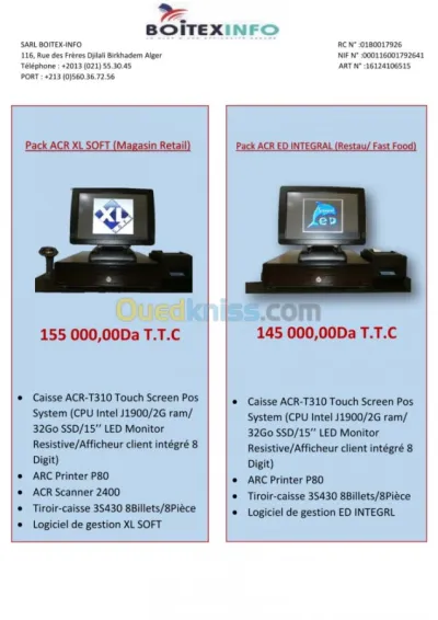 BOITEXINFO vous propose un Pack complet d'une solution d'encaissement (logiciel+matériel) pour divers type d'activité commercial (Restaurant, Fast Food, Pizzeria, cafétéria, magasin de v