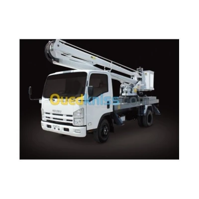 Location d'un camion nacelle de marque isuzu NPR 71 . Pour tous travaux en hauteur de 14 m (éclairage public, montage, charpente métallique- nettoyage de façades vitrées-penture de faç