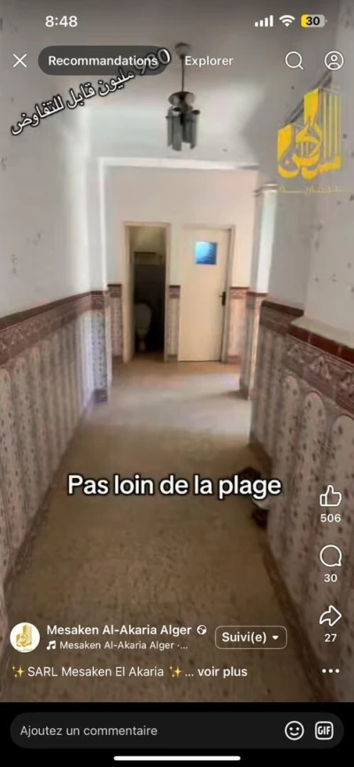 Échange un appartement F5 130 m ² dont 30m² cour, au rez-de-chaussée à réghaïa plage. Contre un appartement du type f4 ou f3 dans les hauteurs. Baba ali. Birtouta. Baba hcene. Birkha