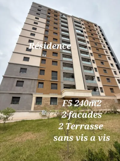 Agence immo met en location Appartement F5 de 240m2 avec 2 terrasse 2 façades double Ascenseur , sans vis à vis ● une résidence gardée et surveillée H24 bien située entre Sidi Yahia