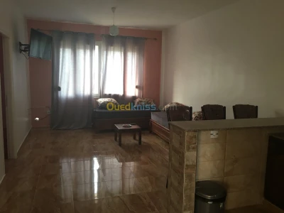 Agence rissala met en location un appartement F3 meublé(climatiseur +chauffage +chambre a coucher +.....)et bien finie avec une superficie de 75 m² au 3 ème étage a ain lbenian (belle vu