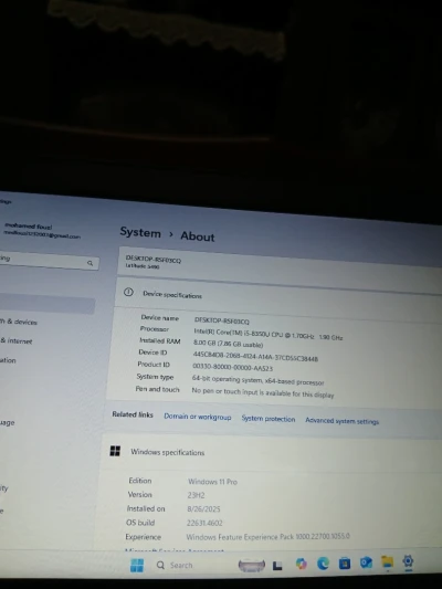 🛠️ Device Info: 📌 Model: Dell Latitude 7400 ⚙️ Processor: Intel Core i5-8365U – 1.60GHz (Turbo up to 1.90GHz) 🧠 RAM: 8GB DDR4 💾 Storage: 256GB SSD 🖥️ Graphics: