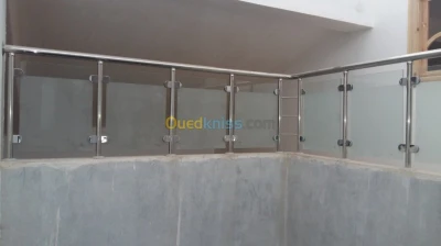 rampe d' escalier en inox façade en verre trempé rideaux électriques portes automatiques armoires en verre Inox 304.L Inox 316.L cabine de douche aluminium/pvc table basse