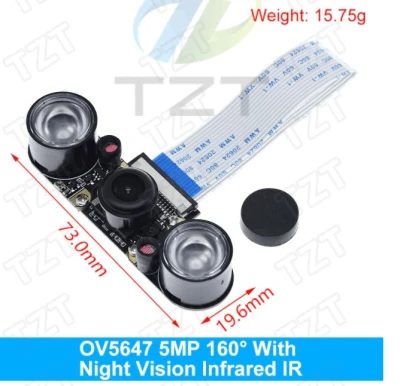 caractéristiques : • Module de caméra 5M Omnivision 5647 • Entièrement compatible avec le modèle A et le modèle B Raspberry Pi • Résolution d'image fixe: 2592 x 1944 • Vidéo: