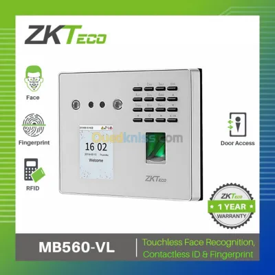 Promo 2025 Pointeuse Biométrique ZKTeco , avec reconnaissance faciale , empreinte digitale , carte et tag RFID MB560 -VL SENSE FACE 2A ( Avec option Visiophone et control d'accès) K60 P