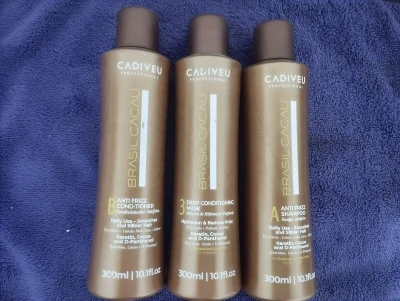 Shampoing et après-shampoing anti-frisottis Cadiveu Professional, masque revitalisant intense, prix unitaire: 1 600 dz, 130 unités disponibles. Teinte à lèvres Revlon, prix unitaire: 600