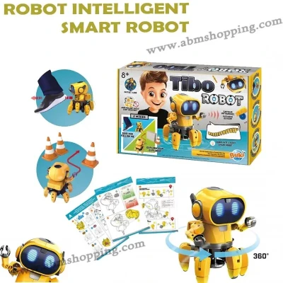 Assemble Tibo le robot et découvre ses fonctions surprenantes : Mode Suis-moi: grâce à ses capteurs, le robot détecte une présence et suis les pas de l’enfant. Mode Explorateur: le r